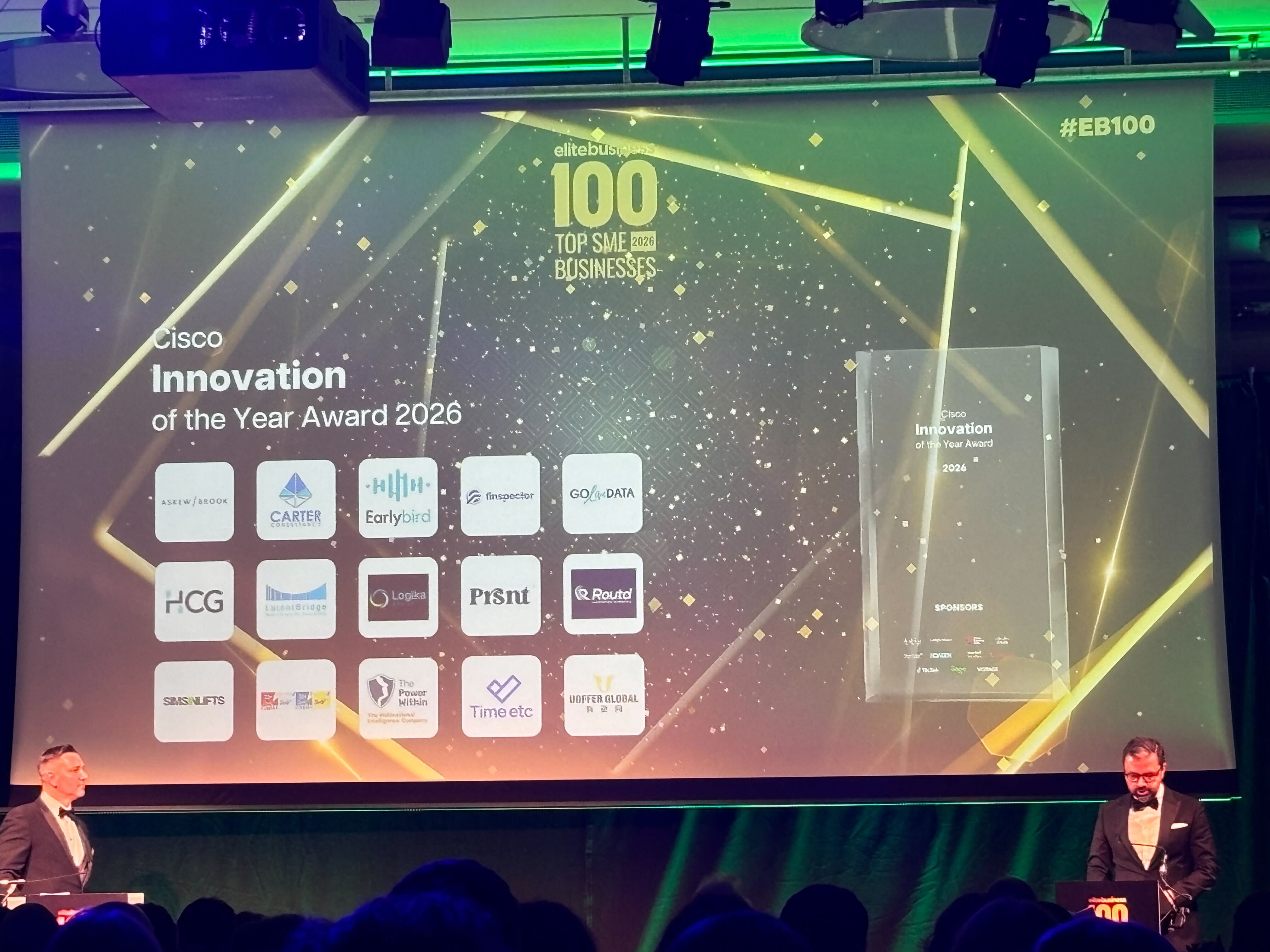 Earlybird has been named the winner of the Cisco Innovation of the Year Award at the 2026 Elite Business 100 Awards, held on 11 March at the Leonardo Royal Hotel, St Paul's, London.